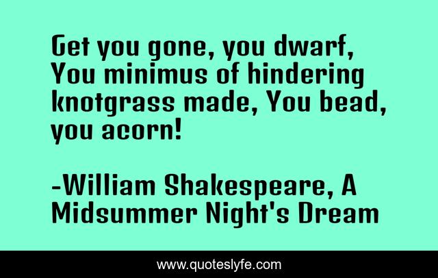 "William Shakespeare, A Midsummer Night's Dream Quotes." Quoteslyfe.com, 2025. Mon. 08 Dec. 2025. <https://www.quoteslyfe.com/quote/Get-you-gone-you-dwarf-You-minimus-239281>.
