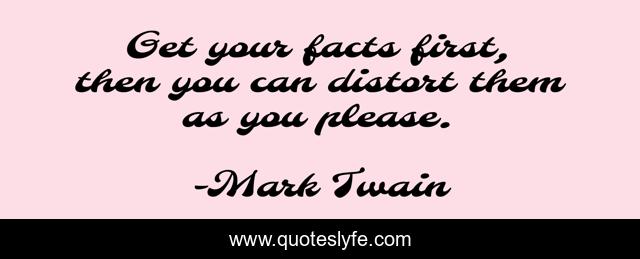 This page presents the quote "Get your facts first, then you can distort them as you please.". Author of this quote is Mark Twain. This quote is about facts, first,.