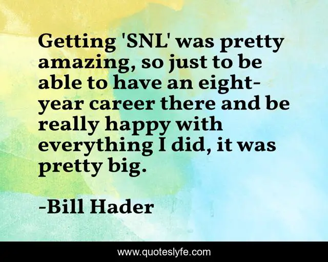 This page presents the quote "Getting 'SNL' was pretty amazing, so just to be able to have an eight-year career there and be really happy with everything I did, it was pretty big.". Author of this quote is Bill Hader. This quote is about career, everything, happy,.