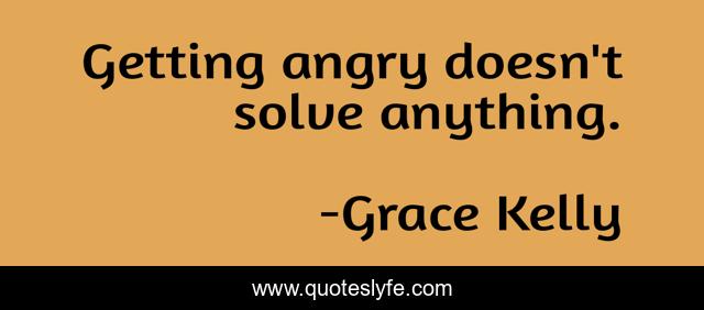 This page presents the quote "Getting angry doesn't solve anything.". Author of this quote is Grace Kelly. This quote is about angry, anything, getting,.