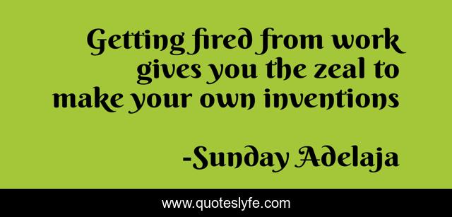 This page presents the quote "Getting fired from work gives you the zeal to make your own inventions". Author of this quote is Sunday Adelaja. This quote is about life, blessing, finance, zeal, money, work, invent, job, invention,.