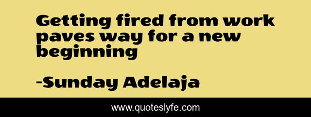 This page presents the quote "Getting fired from work paves way for a new beginning". Author of this quote is Sunday Adelaja. This quote is about life, blessing, finance, money, work, job, joblessness, purpose, time,.