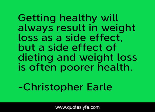 This page presents the quote "Getting healthy will always result in weight loss as a side effect, but a side effect of dieting and weight loss is often poorer health.". Author of this quote is Christopher Earle. This quote is about fitness-inspiration, health-and-fitness, healthy-living, fitness-tips, health, fitness, inspirational-life, healthy-habits, fitness-motivation,.
