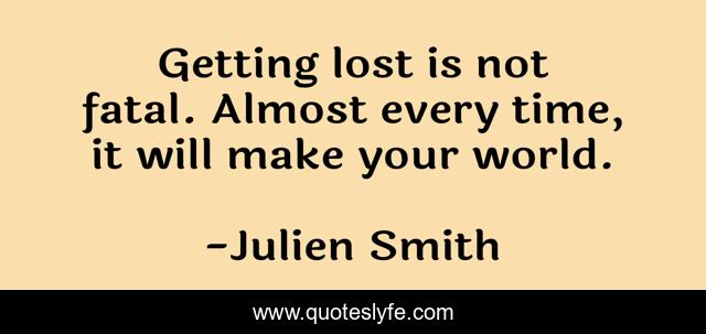 "Julien Smith Quotes." Quoteslyfe.com, 2025. Sat. 06 Dec. 2025. <https://www.quoteslyfe.com/quote/Getting-lost-is-not-fatal-Almost-every-32337>.