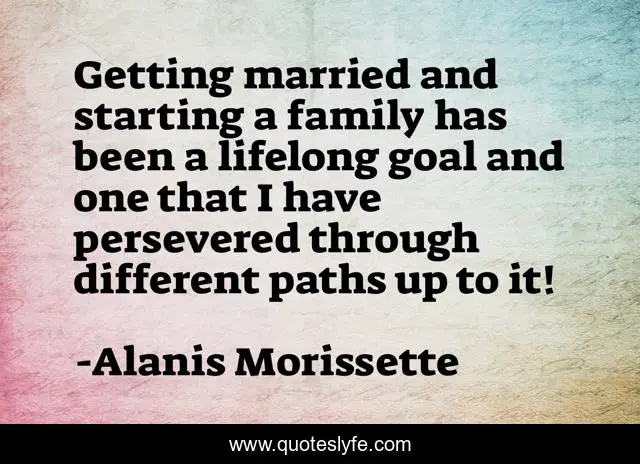 This page presents the quote "Getting married and starting a family has been a lifelong goal and one that I have persevered through different paths up to it!". Author of this quote is Alanis Morissette. This quote is about paths, getting married, goal,.