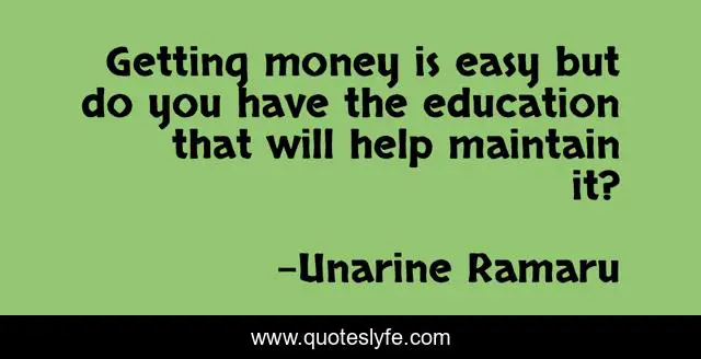 This page presents the quote "Getting money is easy but do you have the education that will help maintain it?". Author of this quote is Unarine Ramaru. This quote is about life, hard-work, success, money, motivation, education,.