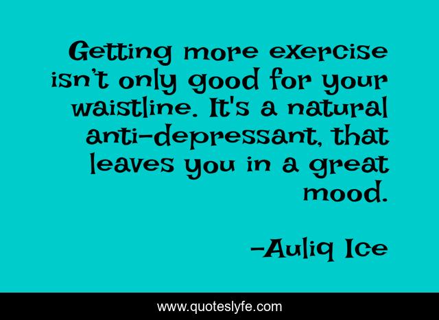 This page presents the quote "Getting more exercise isn’t only good for your waistline. It's a natural anti-depressant, that leaves you in a great mood.". Author of this quote is Auliq Ice. This quote is about fitness-inspiration, sports-inspirational, exercise-motivation, sports, jogging, health, exercise, fitness, games,.