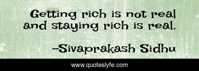 This page presents the quote "Getting rich is not real and staying rich is real.". Author of this quote is Sivaprakash Sidhu. This quote is about sivaprakash, sivaprakash-sidhu, rich-people, rich,.