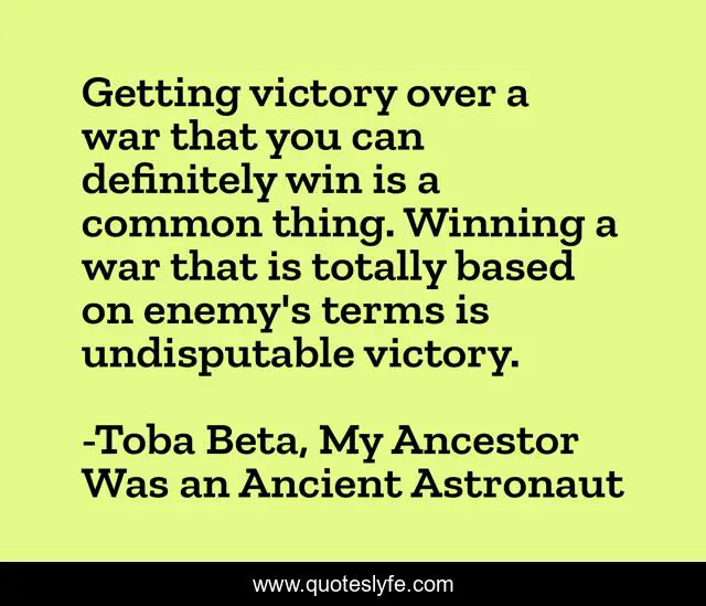 "Toba Beta, My Ancestor Was an Ancient Astronaut Quotes." Quoteslyfe.com, 2025. Mon. 08 Dec. 2025. <https://www.quoteslyfe.com/quote/Getting-victory-over-a-war-that-you-241052>.