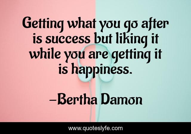 This page presents the quote "Getting what you go after is success but liking it while you are getting it is happiness.". Author of this quote is Bertha Damon. .
