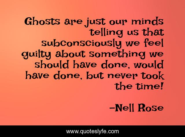This page presents the quote "Ghosts are just our minds telling us that subconsciously we feel guilty about something we should have done, would have done, but never took the time!". Author of this quote is Nell Rose. This quote is about hauntings, ghosts, mind-power,.