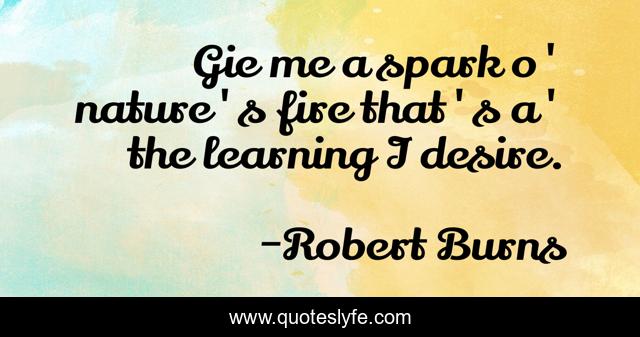 This page presents the quote "Gie me a spark o' nature's fire that's a' the learning I desire.". Author of this quote is Robert Burns. .