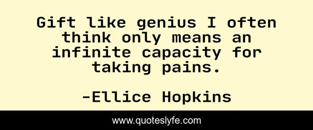 This page presents the quote "Gift like genius I often think only means an infinite capacity for taking pains.". Author of this quote is Ellice Hopkins. .