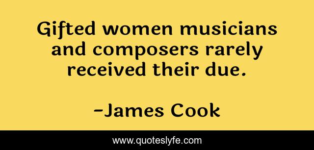 This page presents the quote "Gifted women musicians and composers rarely received their due.". Author of this quote is James Cook. This quote is about composers, gifted, musicians,.
