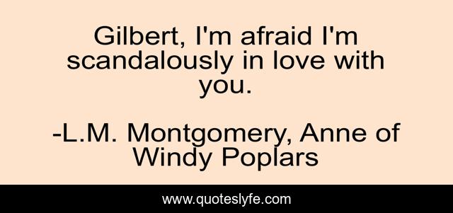 This page presents the quote "Gilbert, I'm afraid I'm scandalously in love with you.". Author of this quote is L.M. Montgomery, Anne of Windy Poplars. This quote is about gilbert-blythe, anne-of-windy-poplars, love, affection, anne-shirley,.