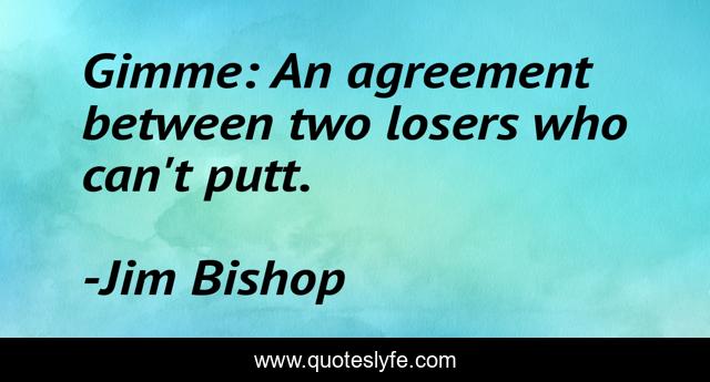 This page presents the quote "Gimme: An agreement between two losers who can't putt.". Author of this quote is Jim Bishop. .