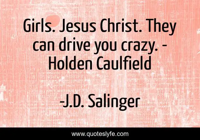 "J.D. Salinger Quotes." Quoteslyfe.com, 2025. Sat. 06 Dec. 2025. <https://www.quoteslyfe.com/quote/Girls-Jesus-Christ-They-can-drive-you-225818>.