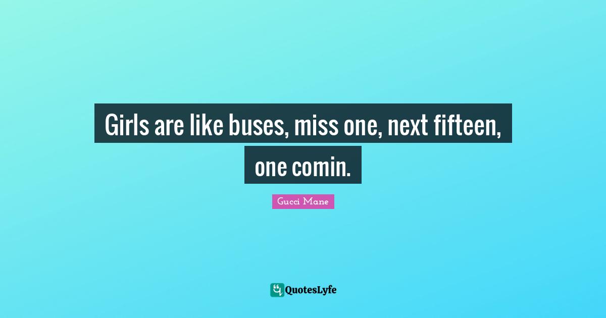 "Gucci Mane Quotes." Quoteslyfe.com, 2026. Mon. 12 Jan. 2026. <https://www.quoteslyfe.com/quote/Girls-are-like-buses-miss-one-next-629270>.
