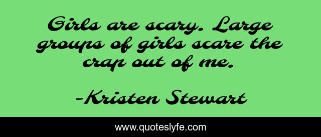 This page presents the quote "Girls are scary. Large groups of girls scare the crap out of me.". Author of this quote is Kristen Stewart. .