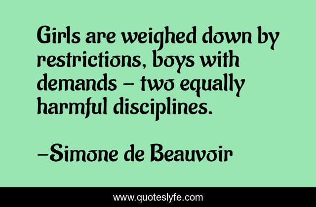 "Simone de Beauvoir Quotes." Quoteslyfe.com, 2025. Sat. 06 Dec. 2025. <https://www.quoteslyfe.com/quote/Girls-are-weighed-down-by-restrictions-boys-101905>.