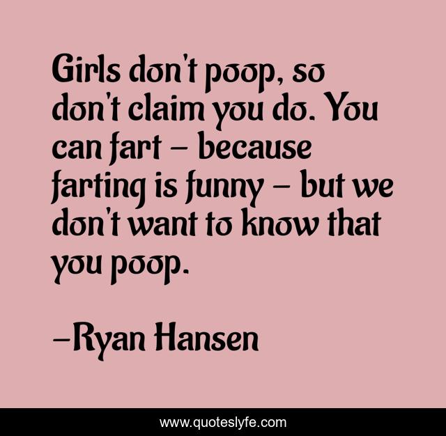 This page presents the quote "Girls don't poop, so don't claim you do. You can fart - because farting is funny - but we don't want to know that you poop.". Author of this quote is Ryan Hansen. .