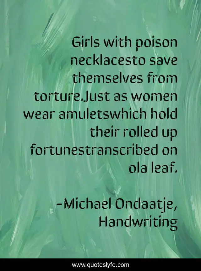 "Michael Ondaatje, Handwriting Quotes." Quoteslyfe.com, 2025. Sat. 06 Dec. 2025. <https://www.quoteslyfe.com/quote/Girls-with-poison-necklacesto-save-themselves-from-52907>.