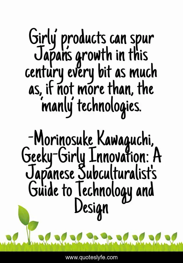 "Morinosuke Kawaguchi, Geeky-Girly Innovation: A Japanese Subculturalist's Guide to Technology and Design Quotes." Quoteslyfe.com, 2025. Tue. 09 Dec. 2025. <https://www.quoteslyfe.com/quote/Girly-products-can-spur-Japan-s-growth-137613>.
