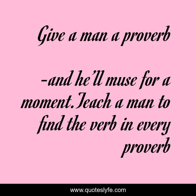 Check all other quotes by and he’ll muse for a moment.Teach a man to find the verb in every proverb