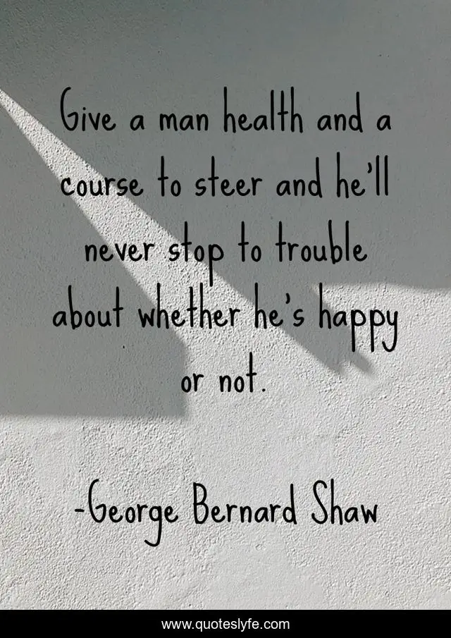 This page presents the quote "Give a man health and a course to steer and he'll never stop to trouble about whether he's happy or not.". Author of this quote is George Bernard Shaw. .