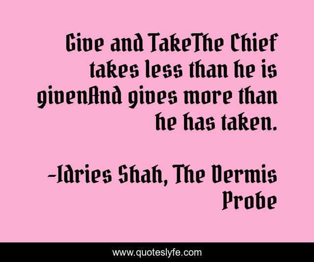 "Idries Shah, The Dermis Probe Quotes." Quoteslyfe.com, 2025. Sat. 06 Dec. 2025. <https://www.quoteslyfe.com/quote/Give-and-TakeThe-Chief-takes-less-than-203470>.