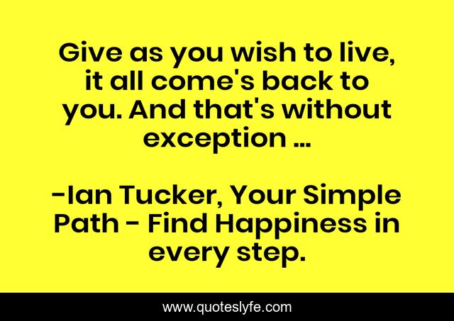 This page presents the quote "Give as you wish to live, it all come's back to you. And that's without exception ...". Author of this quote is Ian Tucker, Your Simple Path - Find Happiness in every step.. This quote is about freedom, happiness, inner-peace, self-help,.