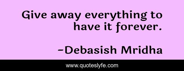 This page presents the quote "Give away everything to have it forever.". Author of this quote is Debasish Mridha. This quote is about life, love, knowledge, inspirational, intelligence, philosophy, wisdom, affection, truth,.
