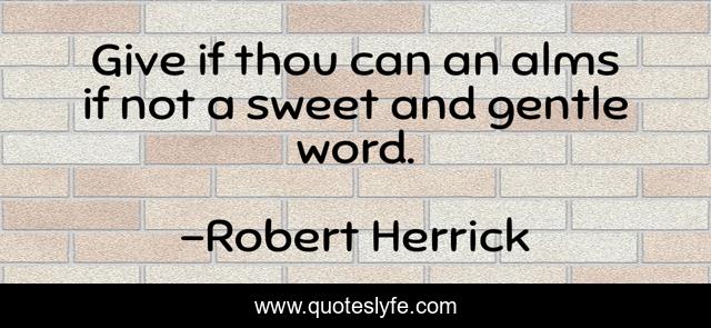 This page presents the quote "Give if thou can an alms if not a sweet and gentle word.". Author of this quote is Robert Herrick. This quote is about helping, people,.