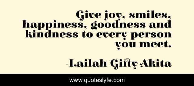 "Lailah Gifty Akita Quotes." Quoteslyfe.com, 2025. Mon. 08 Dec. 2025. <https://www.quoteslyfe.com/quote/Give-joy-smiles-happiness-goodness-and-kindness-136627>.