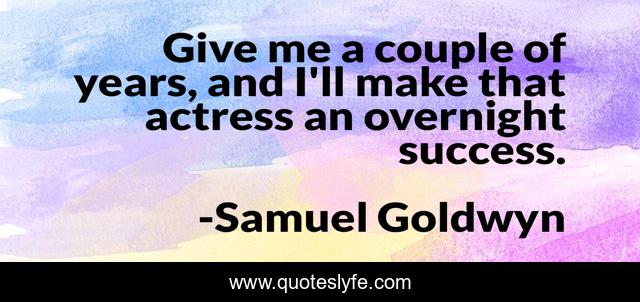 This page presents the quote "Give me a couple of years, and I'll make that actress an overnight success.". Author of this quote is Samuel Goldwyn. This quote is about me, success, years,.