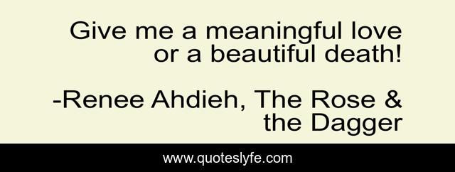 This page presents the quote "Give me a meaningful love or a beautiful death!". Author of this quote is Renee Ahdieh, The Rose & the Dagger. This quote is about life, death, love, affection,.