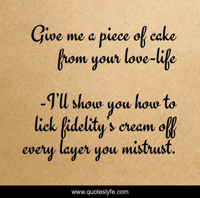 "I’ll show you how to lick fidelity’s cream off every layer you mistrust. Quotes." Quoteslyfe.com, 2025. Mon. 08 Dec. 2025. <https://www.quoteslyfe.com/quote/Give-me-a-piece-of-cake-from-119897>.
