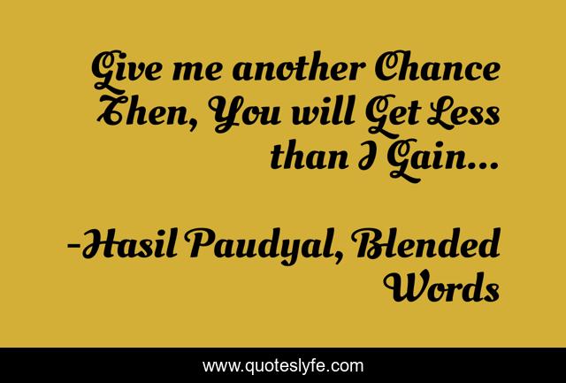 "Hasil Paudyal, Blended Words Quotes." Quoteslyfe.com, 2025. Tue. 09 Dec. 2025. <https://www.quoteslyfe.com/quote/Give-me-another-Chance-Then-You-will-104596>.