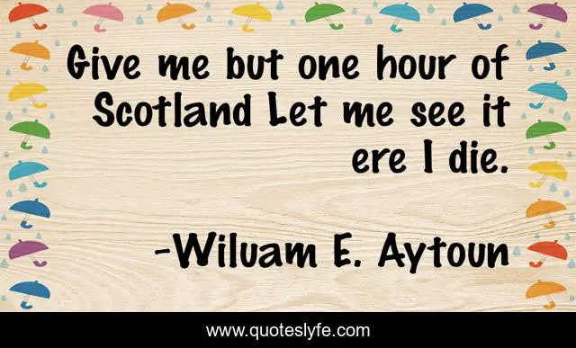 "Wiluam E. Aytoun Quotes." Quoteslyfe.com, 2025. Sat. 06 Dec. 2025. <https://www.quoteslyfe.com/quote/Give-me-but-one-hour-of-Scotland-275477>.