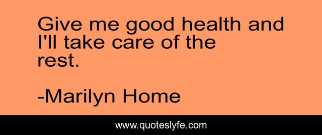 This page presents the quote "Give me good health and I'll take care of the rest.". Author of this quote is Marilyn Home. This quote is about positive, confidence,.