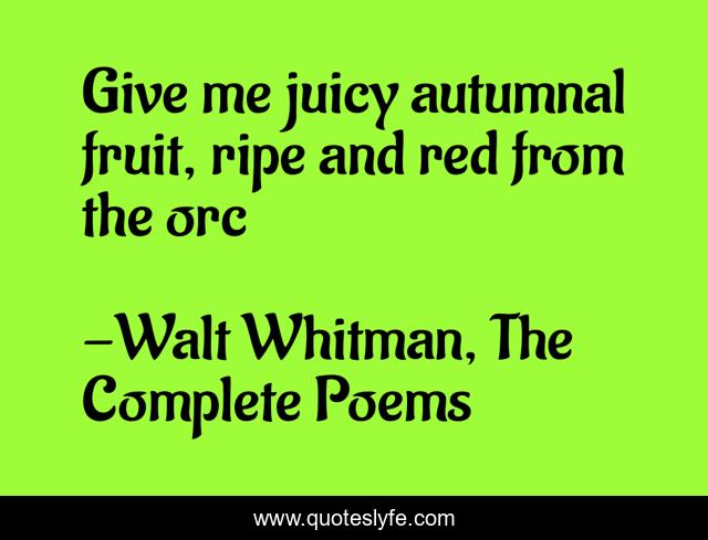 "Walt Whitman, The Complete Poems Quotes." Quoteslyfe.com, 2025. Sat. 06 Dec. 2025. <https://www.quoteslyfe.com/quote/Give-me-juicy-autumnal-fruit-ripe-and-257175>.