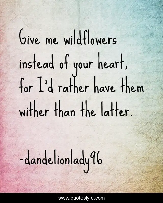 "dandelionlady96 Quotes." Quoteslyfe.com, 2025. Fri. 05 Dec. 2025. <https://www.quoteslyfe.com/quote/Give-me-wildflowers-instead-of-your-heart-138879>.