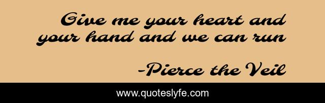 This page presents the quote "Give me your heart and your hand and we can run". Author of this quote is Pierce the Veil. This quote is about ptv, million-dollar-houses, lyrics,.