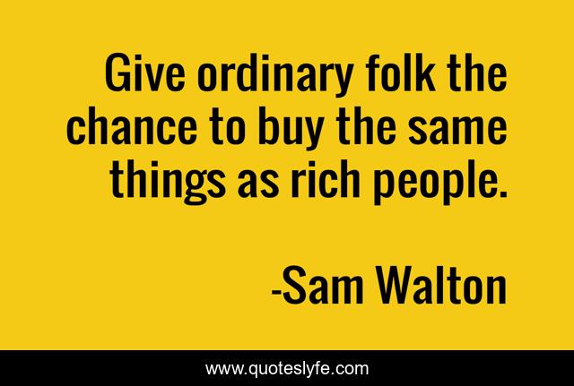 This page presents the quote "Give ordinary folk the chance to buy the same things as rich people.". Author of this quote is Sam Walton. This quote is about rich, same, people,.