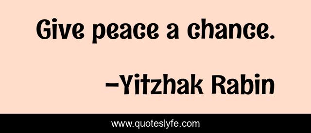 "Yitzhak Rabin Quotes." Quoteslyfe.com, 2025. Sun. 07 Dec. 2025. <https://www.quoteslyfe.com/quote/Give-peace-a-chance-305559>.