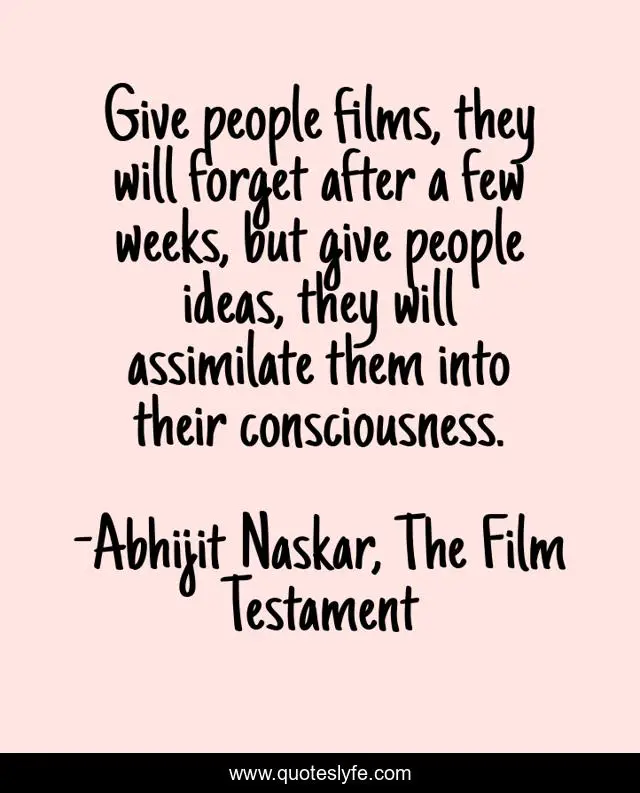 "Abhijit Naskar, The Film Testament Quotes." Quoteslyfe.com, 2025. Tue. 09 Dec. 2025. <https://www.quoteslyfe.com/quote/Give-people-films-they-will-forget-after-13689>.