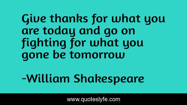 This page presents the quote "Give thanks for what you are today and go on fighting for what you gone be tomorrow". Author of this quote is William Shakespeare. .