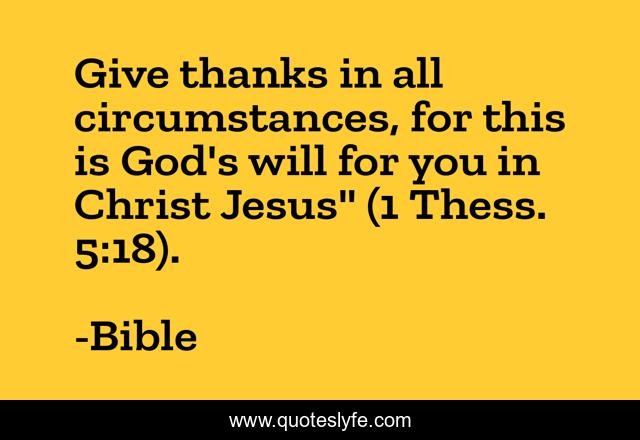 This page presents the quote "Give thanks in all circumstances, for this is God's will for you in Christ Jesus" (1 Thess. 5:18).". Author of this quote is Bible. This quote is about bible, quotes-about-life, quotes, inspirational, enthusiasm, quotes-to-live-by,.