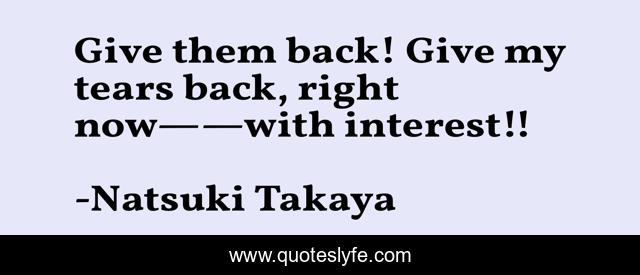 "Natsuki Takaya Quotes." Quoteslyfe.com, 2025. Mon. 08 Dec. 2025. <https://www.quoteslyfe.com/quote/Give-them-back-Give-my-tears-back-228987>.