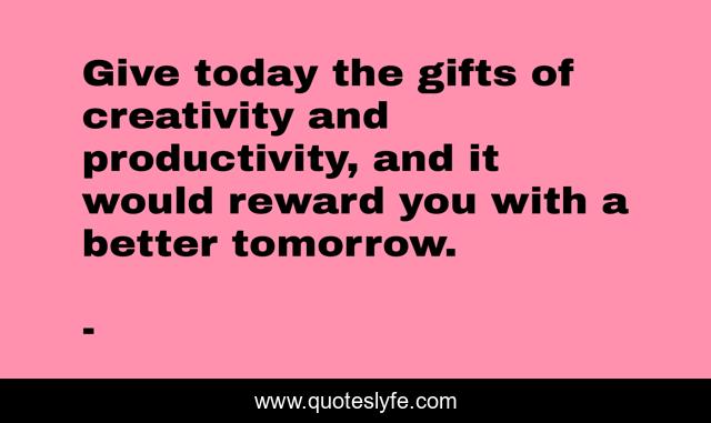 This page presents the quote "Give today the gifts of creativity and productivity, and it would reward you with a better tomorrow.". Author of this quote is . This quote is about edmond-mbiaka, creativity, productivity, a-better-tomorrow,.